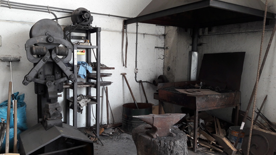 - Un espacio para la forja artesanal con un martillo pilón mecánico de los pocos que se pueden encontrar.